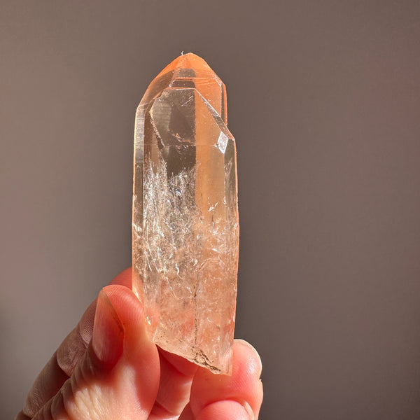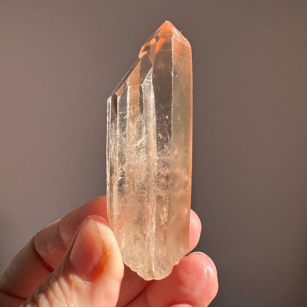 This crystal was found from the earth, and has not been machine polished or buffed in any way. We prefer our crystals like this as to maintain the integrity of the pure energetic blue print of the crystal. It also ensures any special markings on the surface are preserved. Because of this, the crystal may contain small scuffs and chips on the surface.