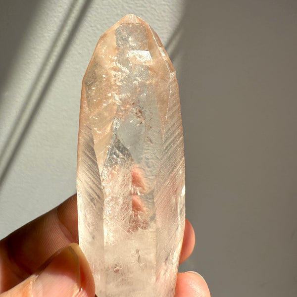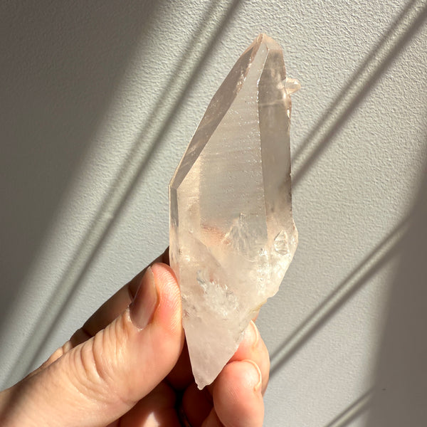 This crystal was found from the earth, and has not been machine polished or buffed in any way. We prefer our crystals like this as to maintain the integrity of the pure energetic blue print of the crystal. It also ensures any special markings on the surface are preserved. Because of this, the crystal may contain small scuffs and chips on the surface.