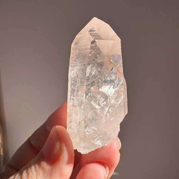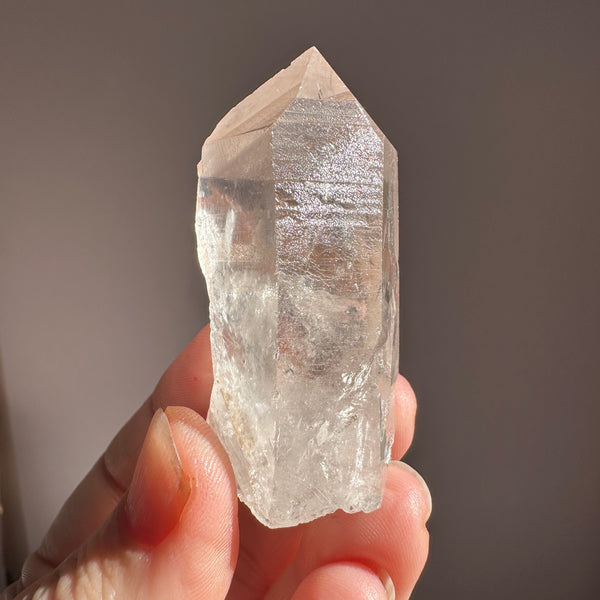 This crystal was found from the earth, and has not been machine polished or buffed in any way. We prefer our crystals like this as to maintain the integrity of the pure energetic blue print of the crystal. It also ensures any special markings on the surface are preserved. Because of this, the crystal may contain small scuffs and chips on the surface.