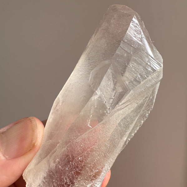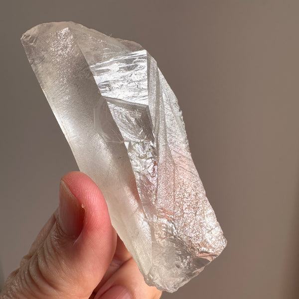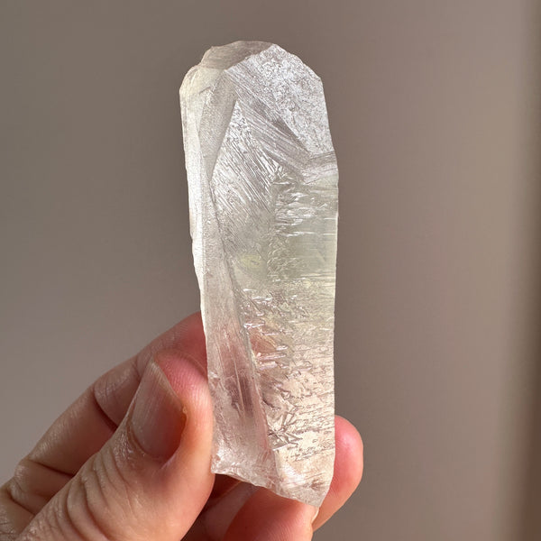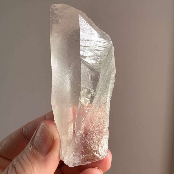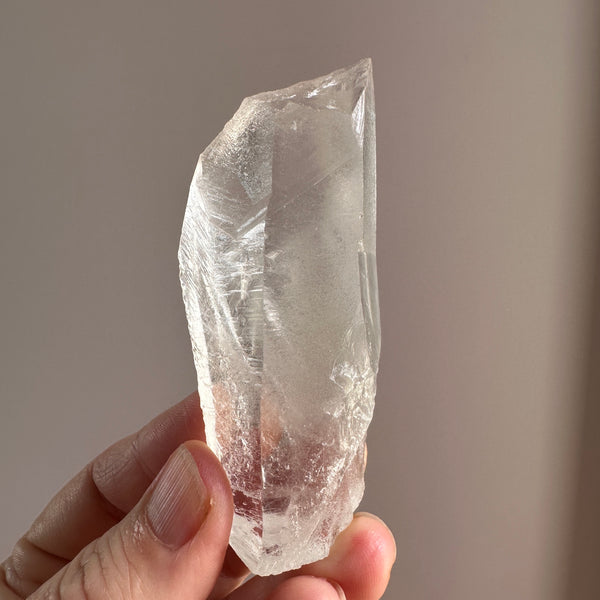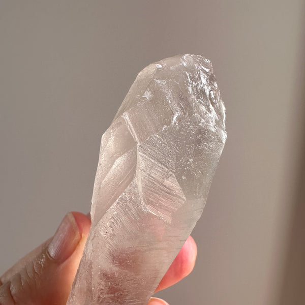 This crystal was found from the earth, and has not been machine polished or buffed in any way. We prefer our crystals like this as to maintain the integrity of the pure energetic blue print of the crystal. It also ensures any special markings on the surface are preserved. Because of this, the crystal may contain small scuffs and chips on the surface.