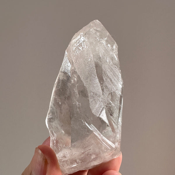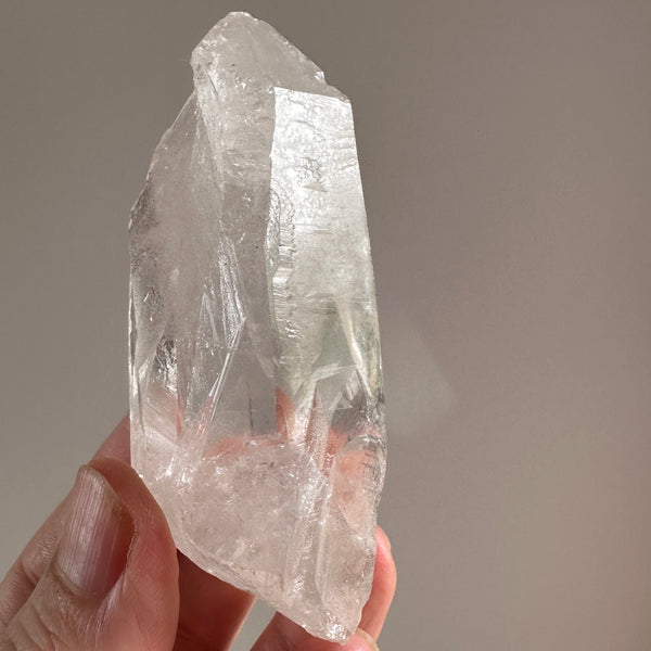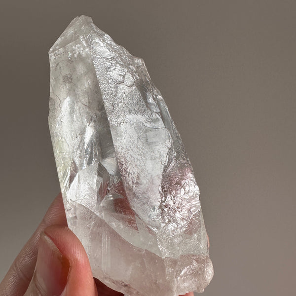 This crystal was found from the earth, and has not been machine polished or buffed in any way. We prefer our crystals like this as to maintain the integrity of the pure energetic blue print of the crystal. It also ensures any special markings on the surface are preserved. Because of this, the crystal may contain small scuffs and chips on the surface.