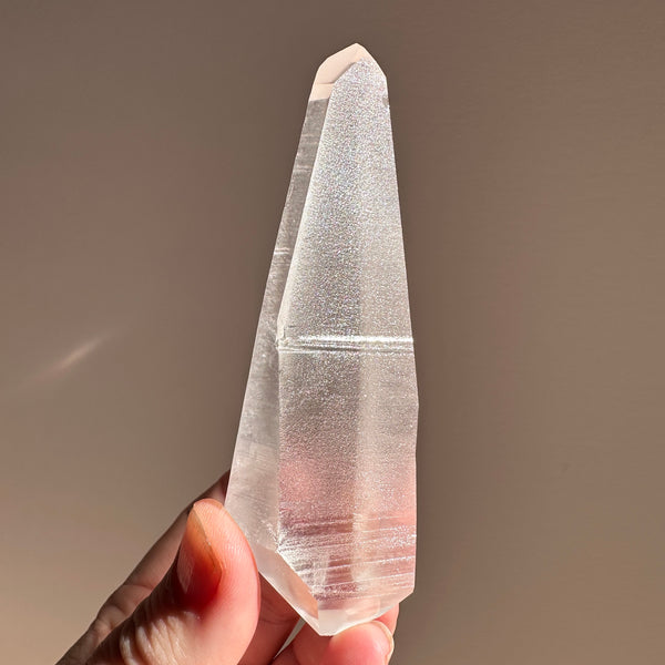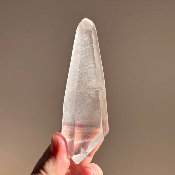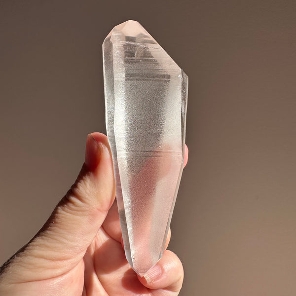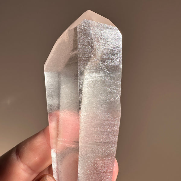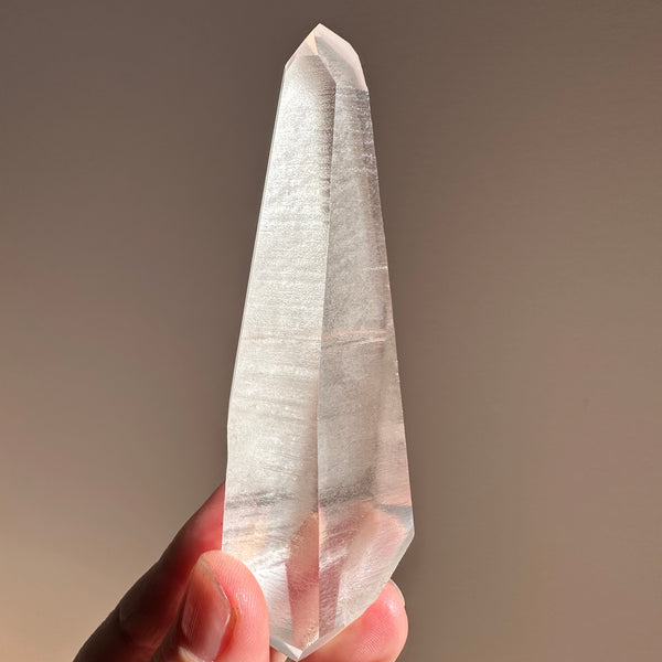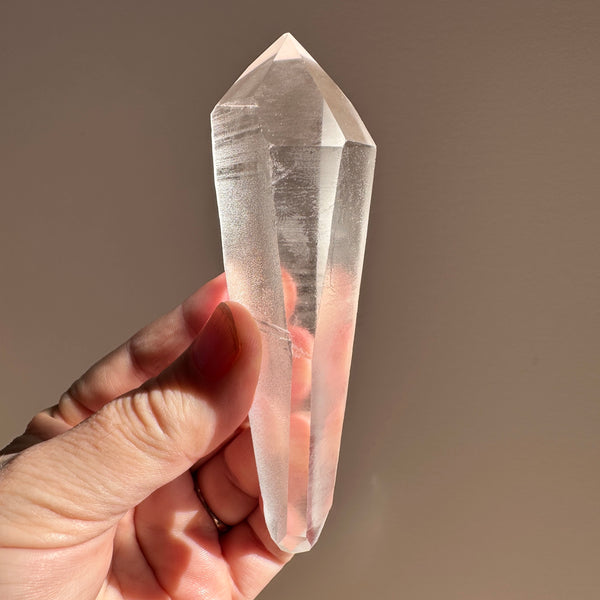 Ridiculously high clarity double terminated lemurian crystal. Double tertiated crystals pass energy through both ends and acts as fabulous conduits and channels of two way energy, great for clearing and cleansing the energy body.