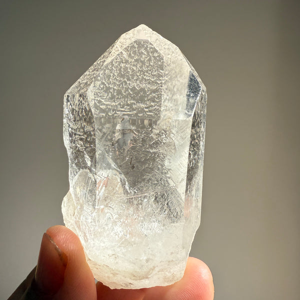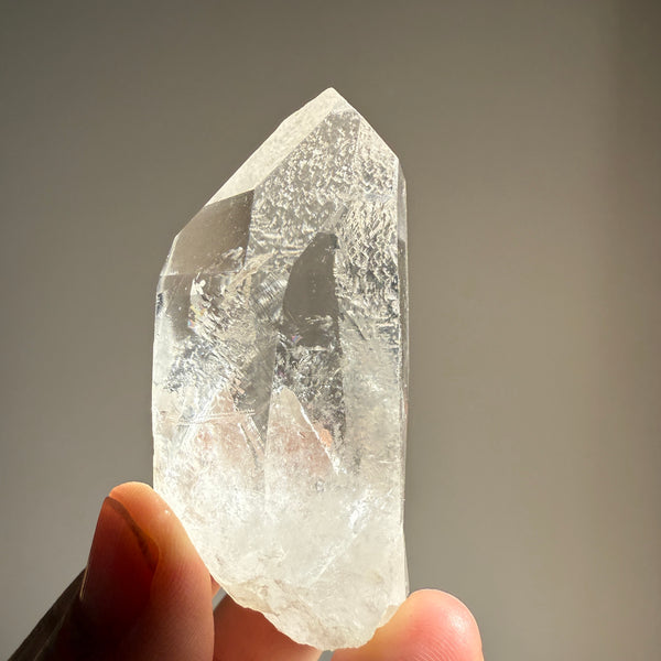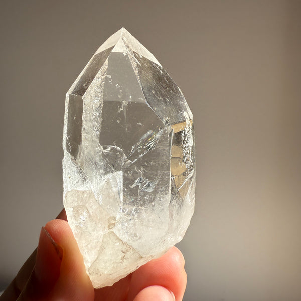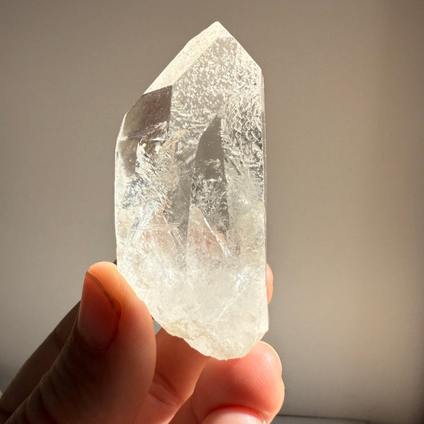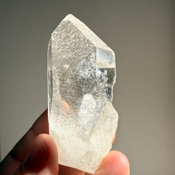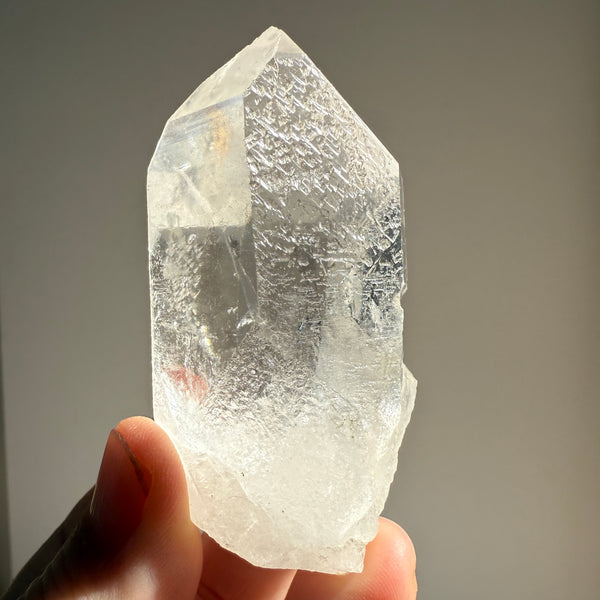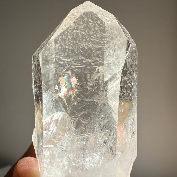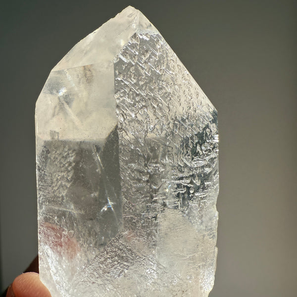 This crystal was found from the earth, and has not been machine polished or buffed in any way. We prefer our crystals like this as to maintain the integrity of the pure energetic blue print of the crystal. It also ensures any special markings on the surface are preserved. Please note the chip in the tip of the crystal shown in the photographs.