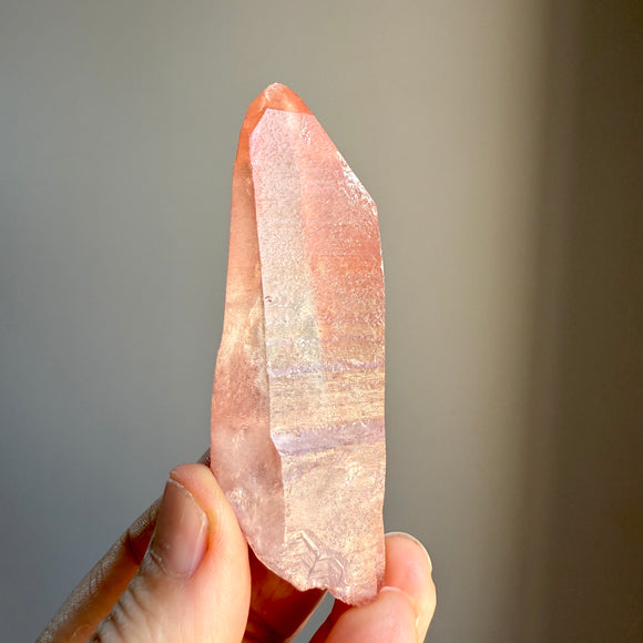 Double Terminated Blush Pink Lemurian Quartz with Triplet Point