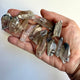 Black Phantom Lemurians are crystals for compassionate shadow work. These clear lemurian crystals are super dark with black tourmaline inclusions. These are completely natural and hence are covered in naturally occurring unique markings.