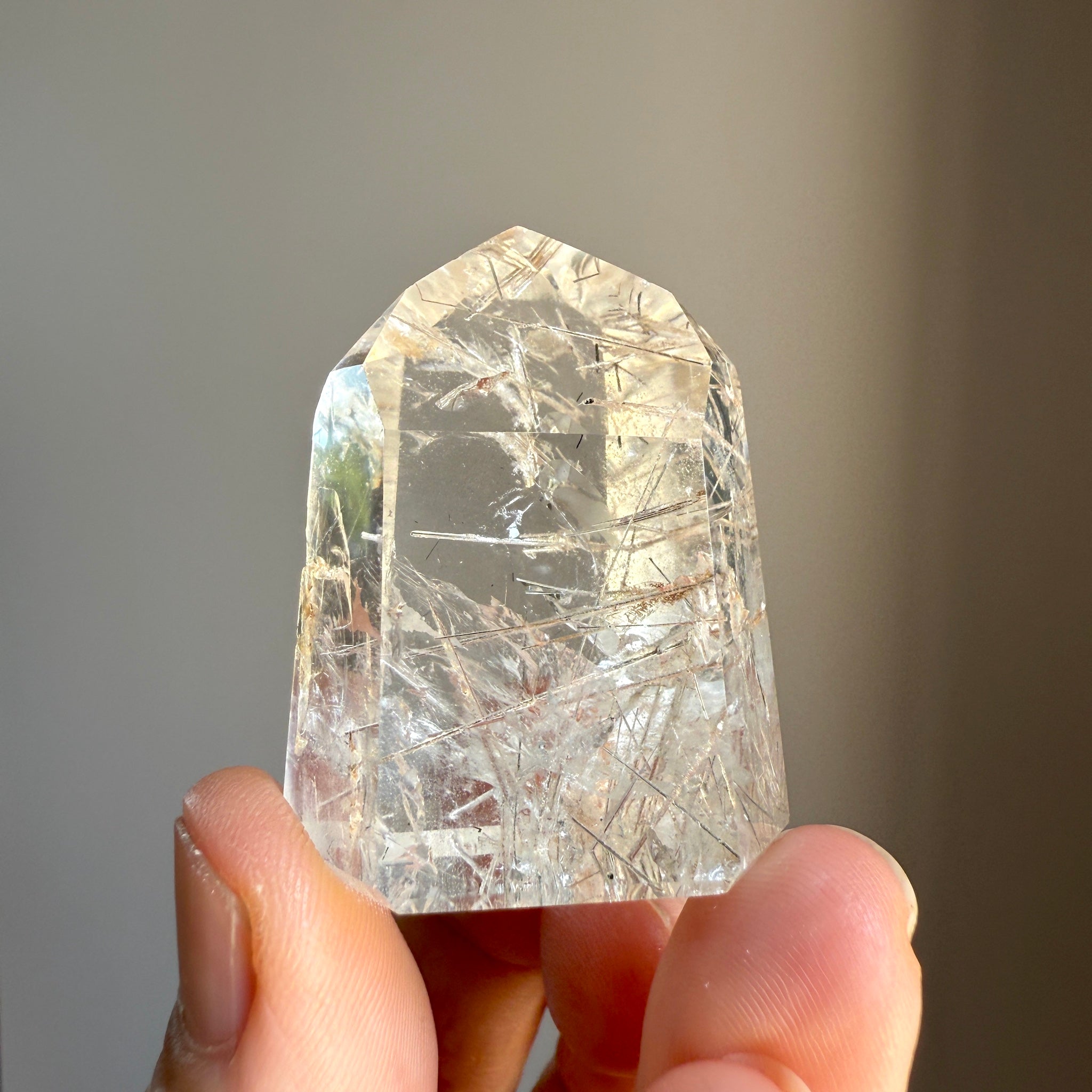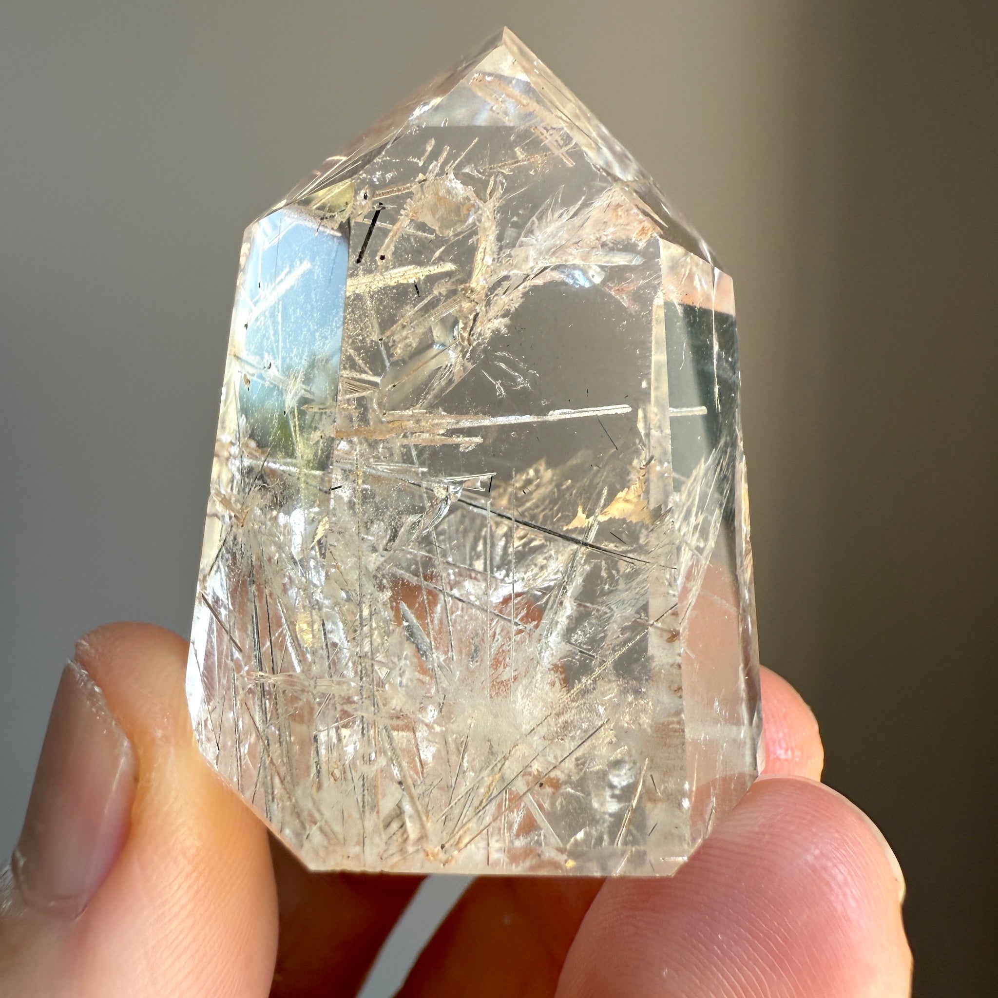 Stunning silver and black rutile inclusions in these high grade quartz points.