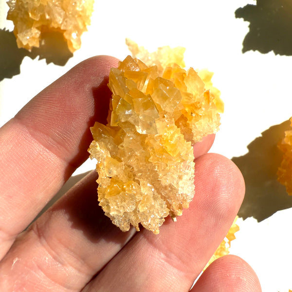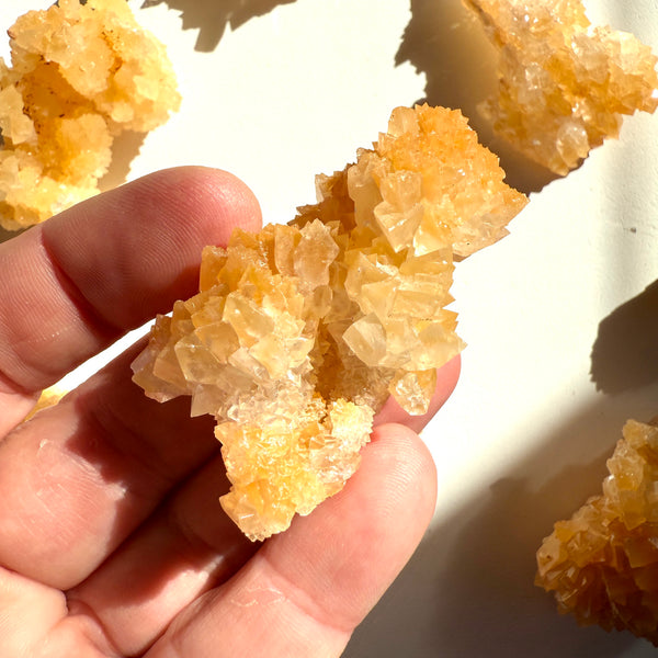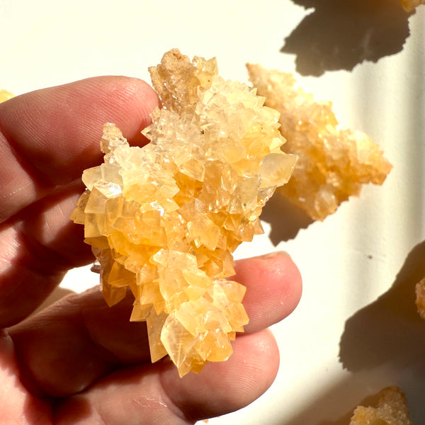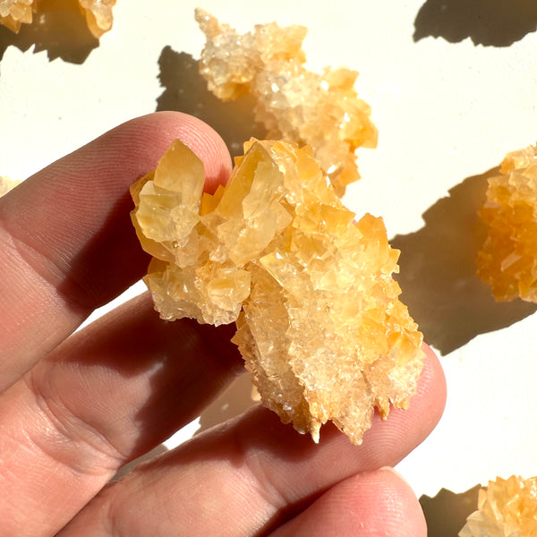 Hand selected for their intense golden colour and intricate formations, these golden calcites radiate new energy of the central sun  - the centre of creation.