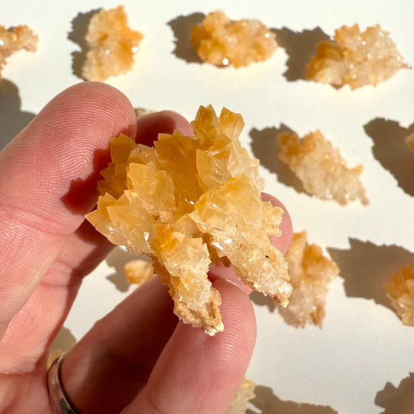Hand selected for their intense golden colour and intricate formations, these golden calcites radiate new energy of the central sun  - the centre of creation.