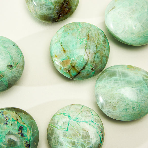 Garnierite, commonly referred to as Green Moonstone, is a variety of Serpentine with a high Nickel content.