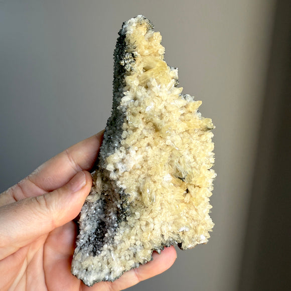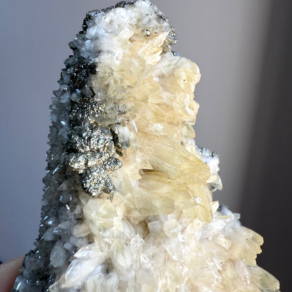 Dual Sided Golden Calcite and Iridescent Rainbow Pyrite
